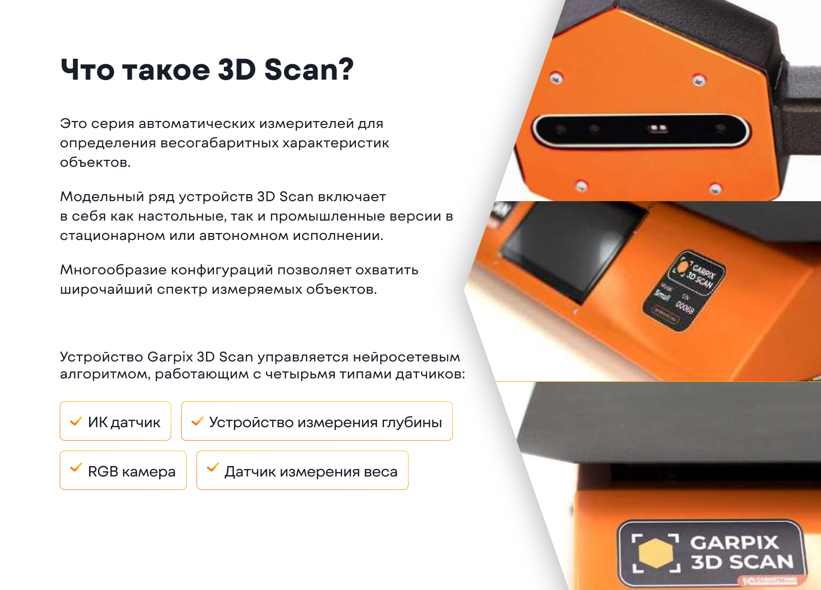 Экспортные товары – Линейка автоматических измерителей ВГХ (весогабаритных характеристик) – GARPIX 3D SCAN